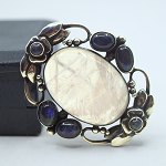 Georg Jensen; Silver brooch with rose quartz and labradorite, no. 78