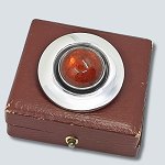 N. E. From; A brooch of sterling silver set with amber