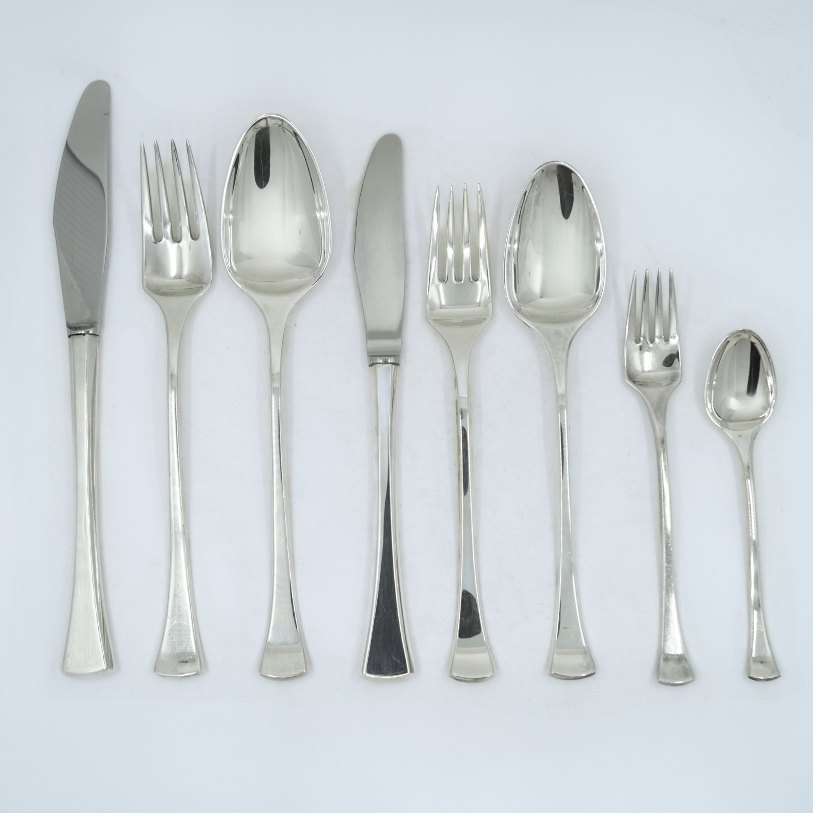 8 dinner spoons, 8 lunch knives, 8 lunch forks, 8 dessert spoons, 8 pastry forks and 8 coffee spoons.