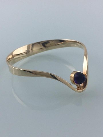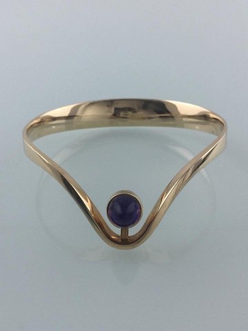 Danish bangle of 14k gold with amethyst by Bent Gabrielsen. Diam. 6,5 cm
