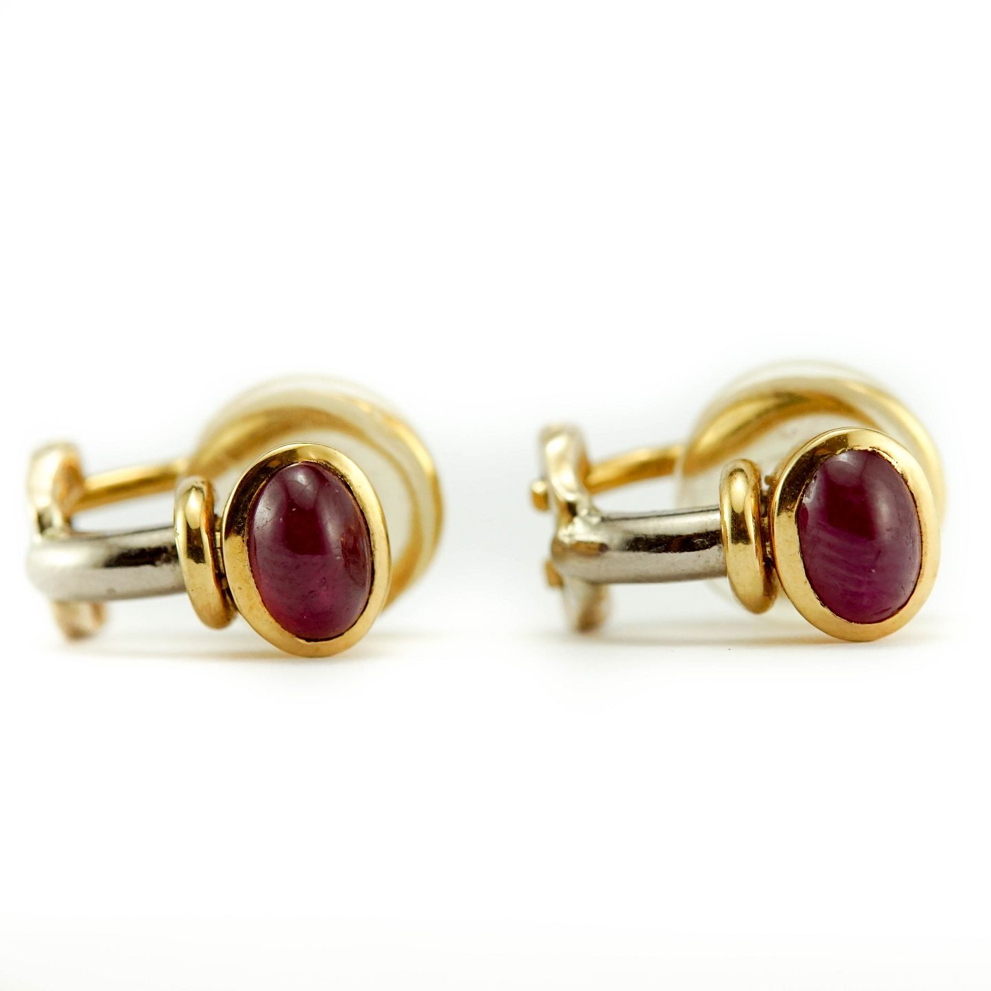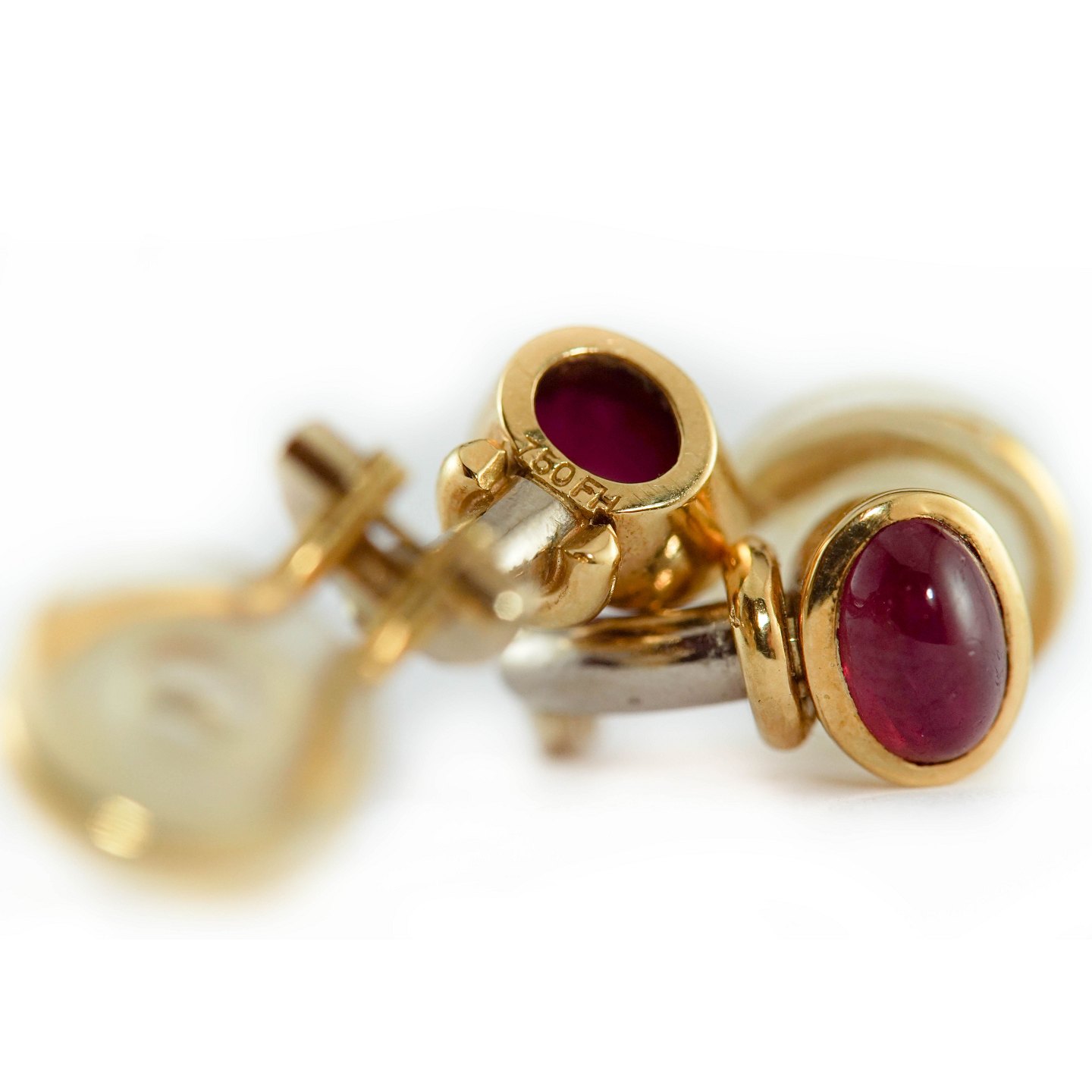 Frantz Hingelberg smykker. Øreclips fra Frantz Hingelberg af 18 karat guld og hvidguld med rubiner. Stemplet "750 FH".