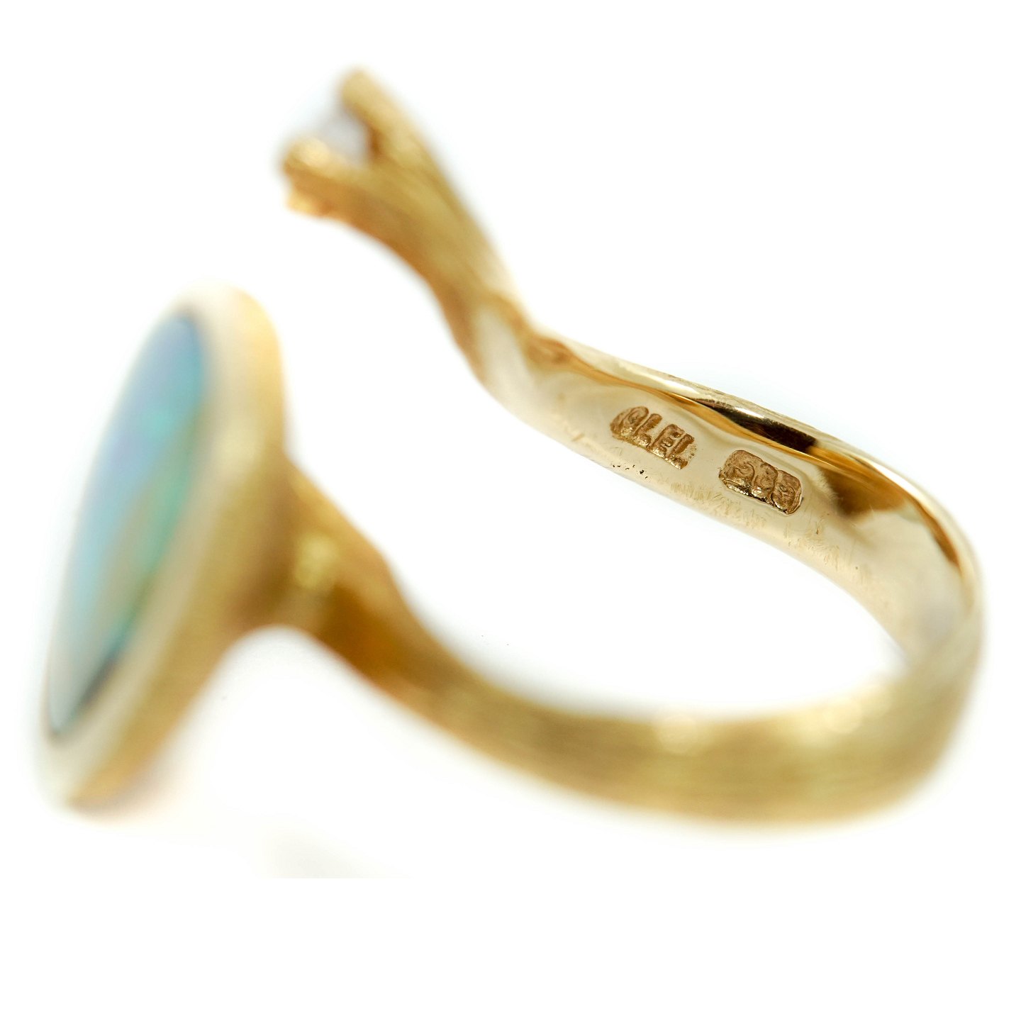 Ole Lynggaard smykke. Ring i 14 kt. guld prydet med stor opal samt diamant. Design Ole Lynggaard. Stemplet "Ole L. 585".