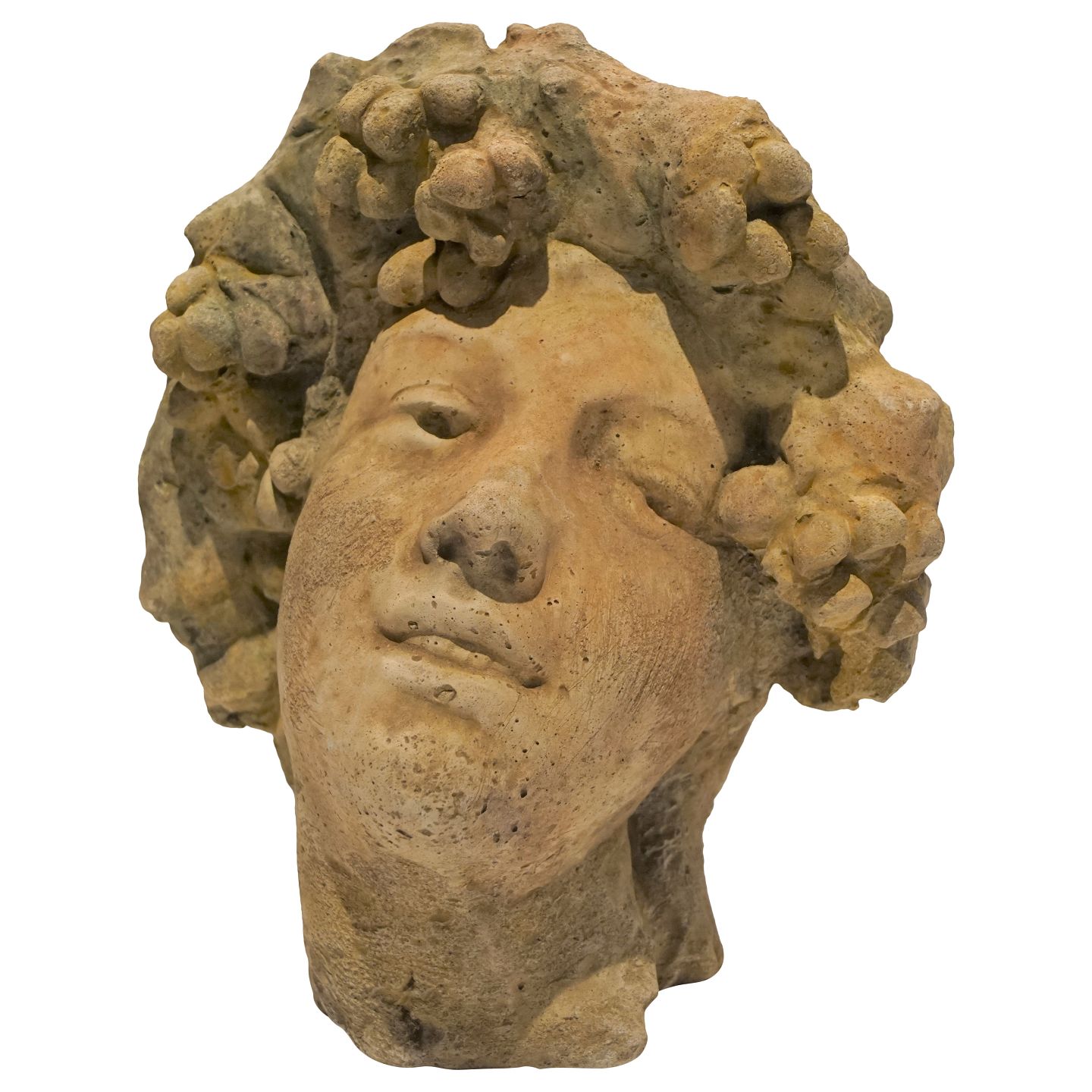 Fransk bygningsfragment i kunststen, forstillende vinguden "Bacchus". H. 34 cm. Frankrig, omkring 1900.