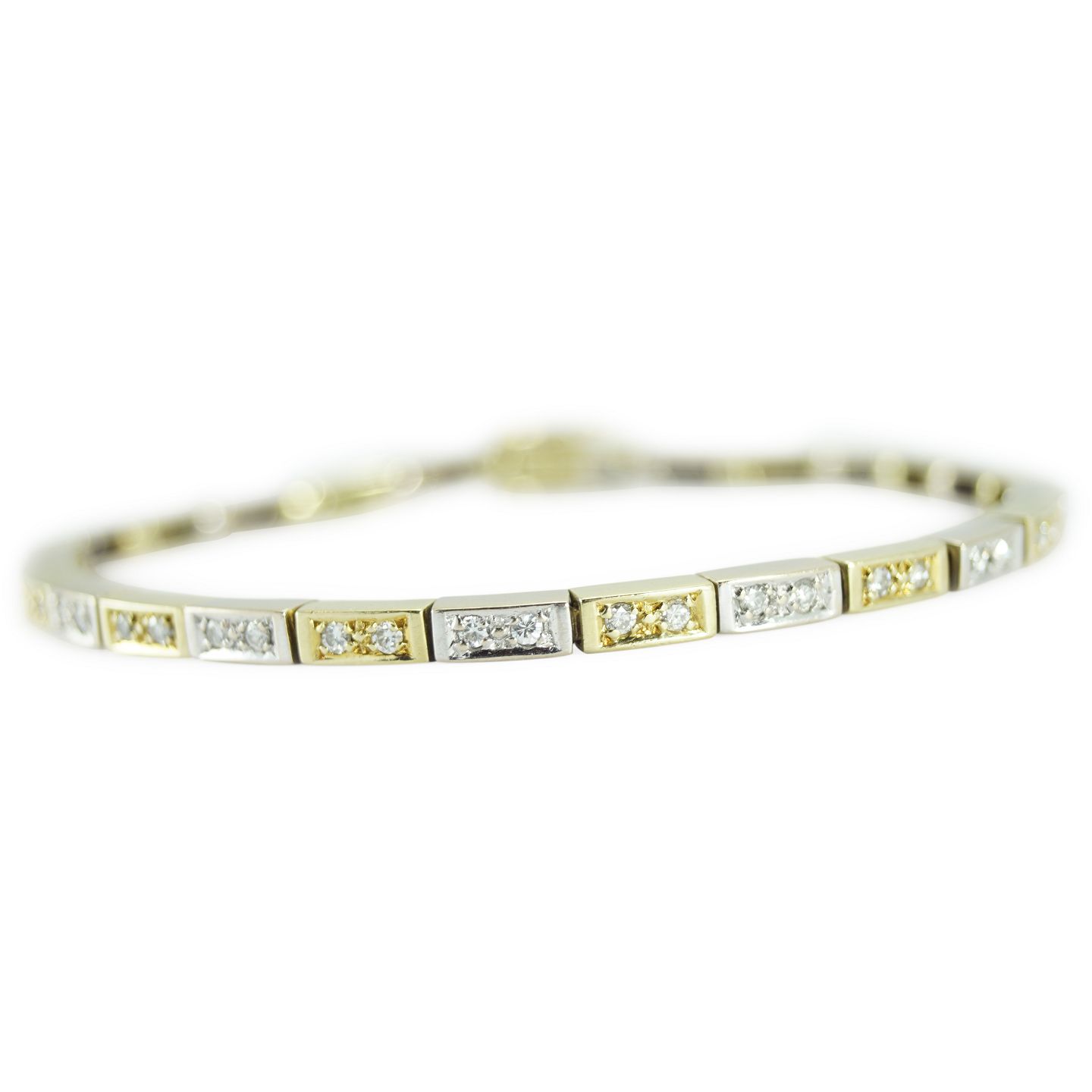 A diamond bracelet set with 52 brillant-cut diamonds weighing app. 1.04 ct., mounted in 14k gold and white gold. Colour: Wesselton (H). Clarity: VS - SI.