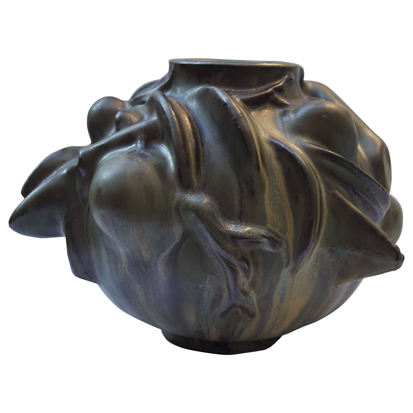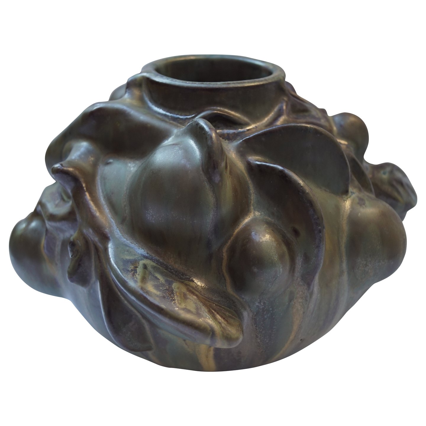 Axel Salto; A stoneware vase in the sprouting style. Decorated with a brown and greenish glaze.