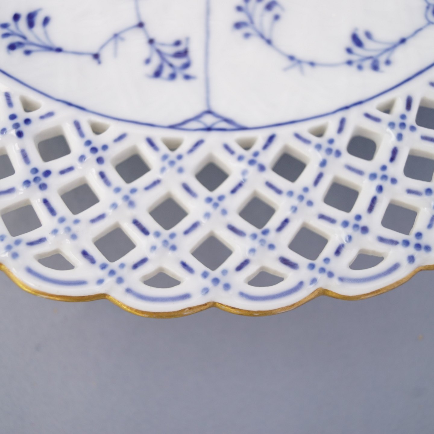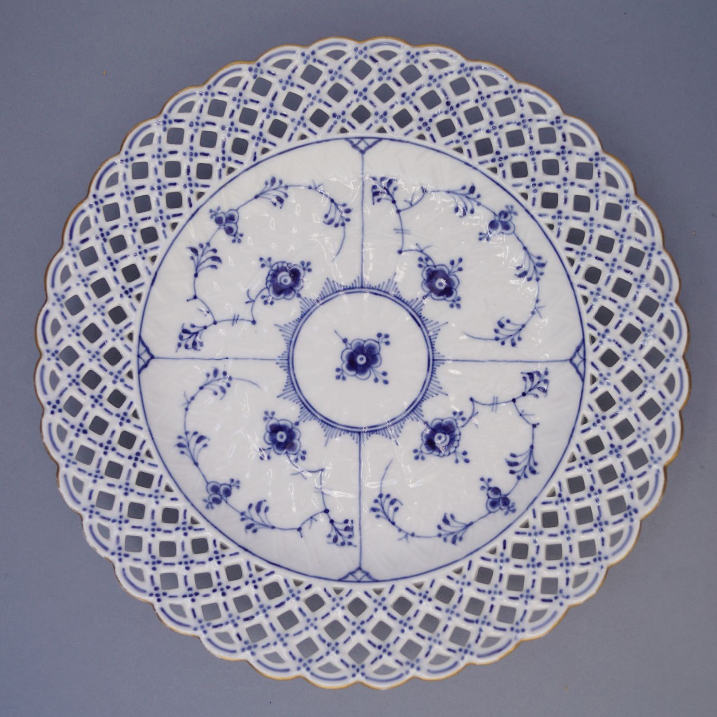 Royal Copenhagen, blue fluted full lace; plate with gold #1098