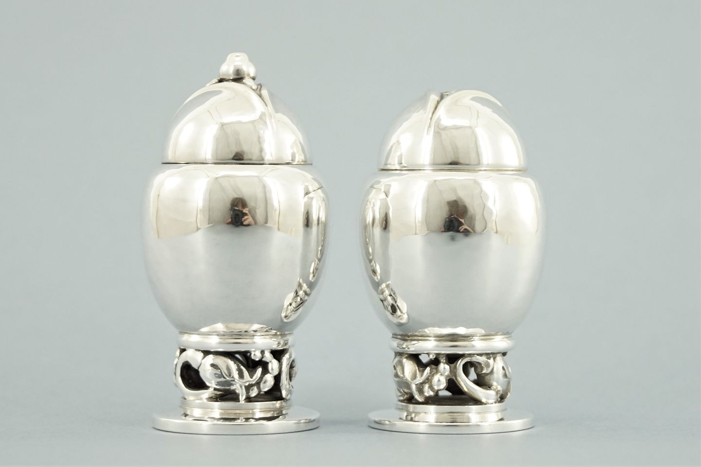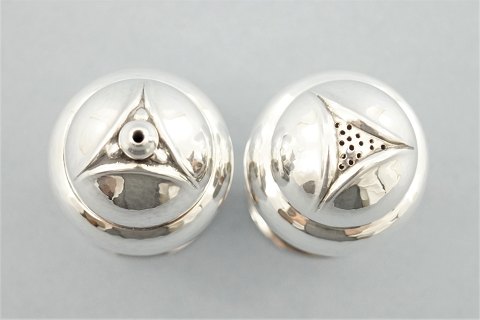 Georg Jensen; Magnolia/Blossom salt and pepper set of sterling silver #2A