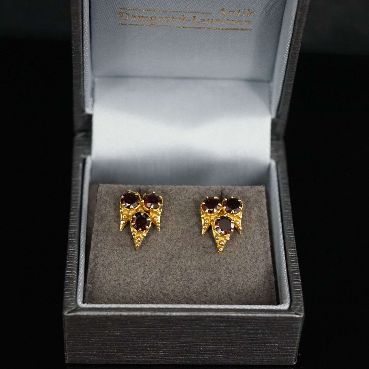 Par ørestikkere i 9 karat guld med tre granater antagelig England