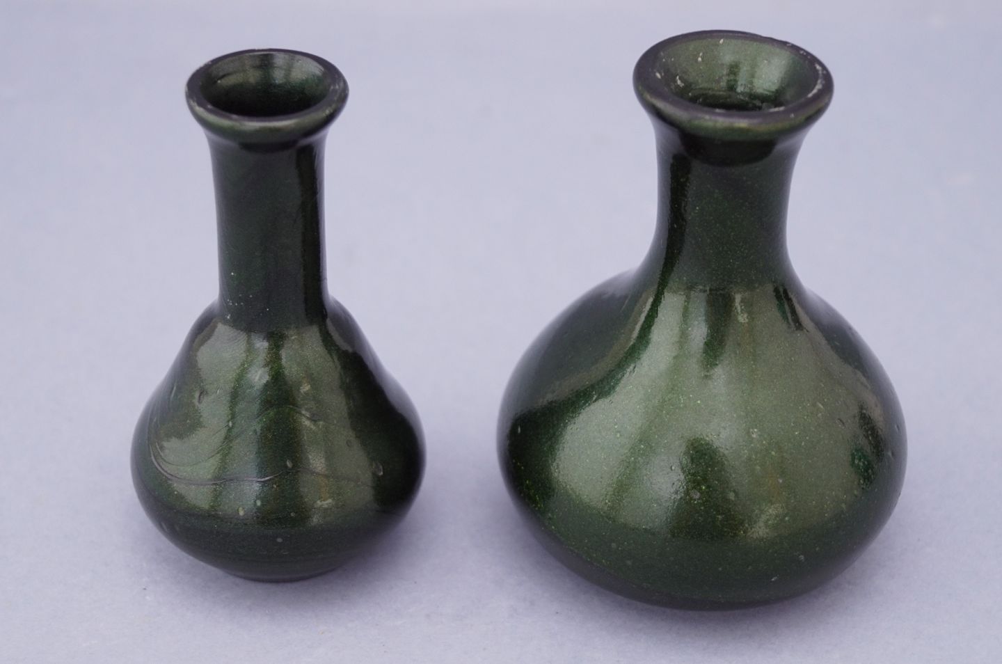 Left (the small one): H. 8,7 cm. Diam. 5 cm cm. SOLD!
