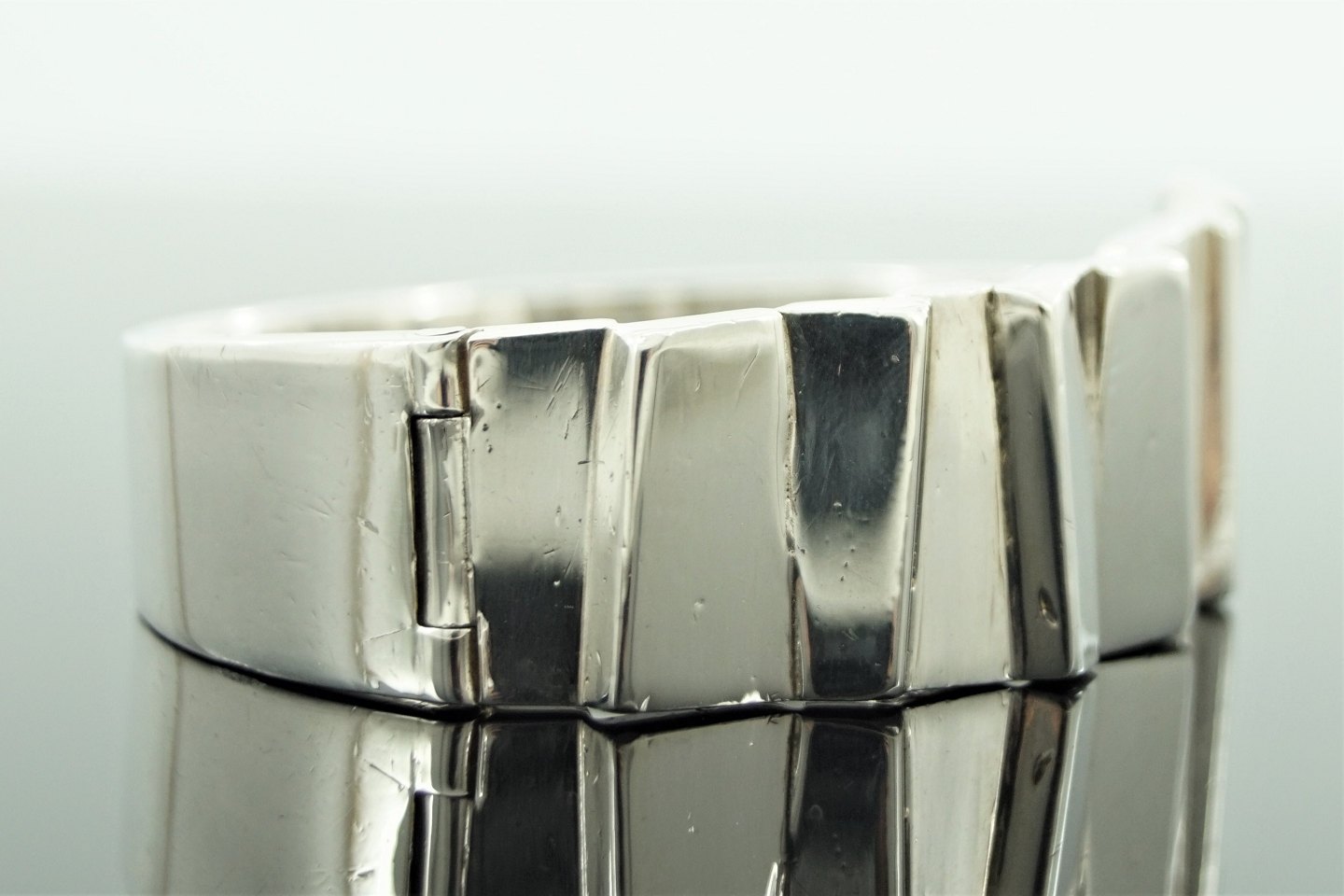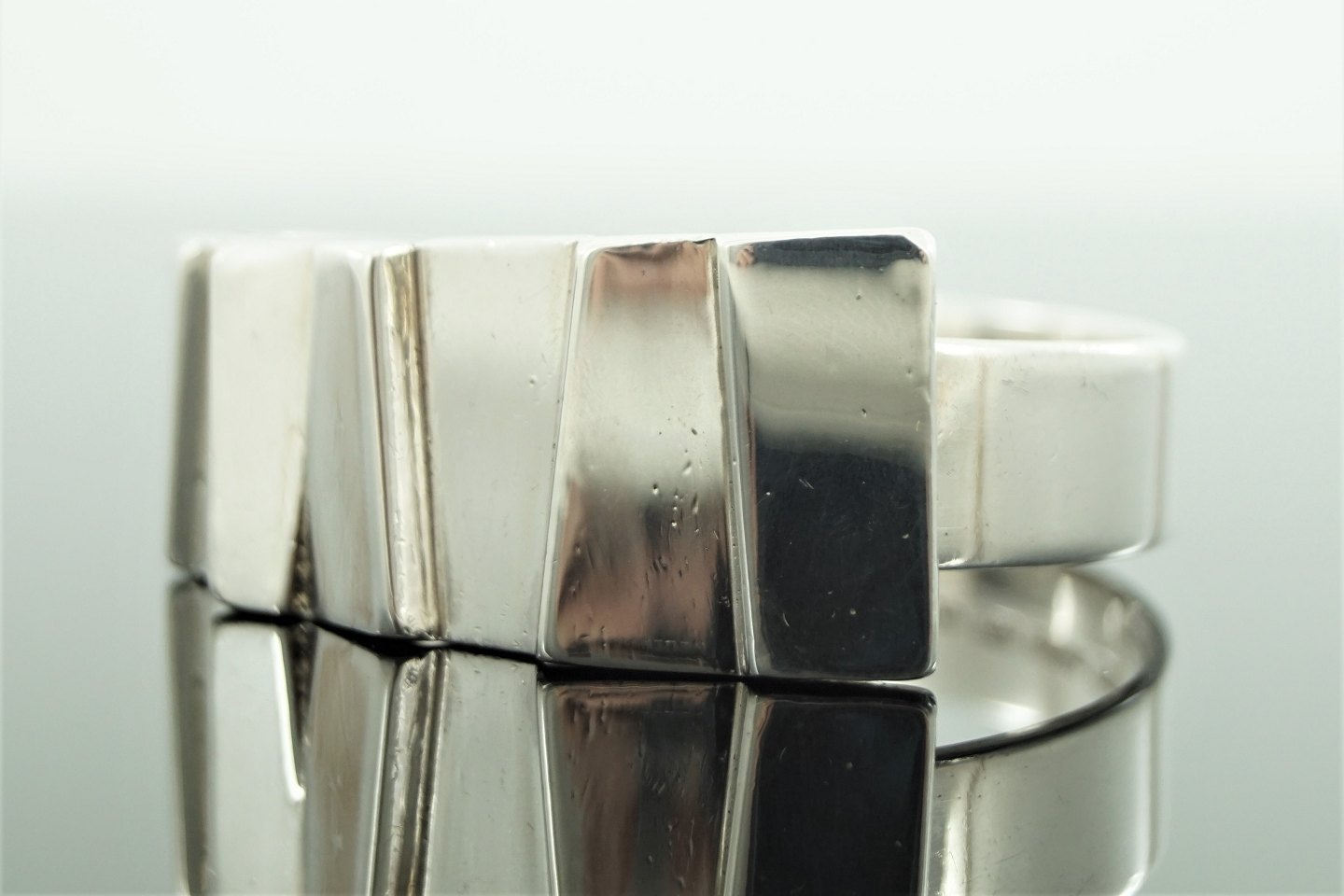 Søren Borup; Armring, som kan åbnes, af massiv sterling sølv. Indvendige mål 5,7 cm x 5,3 cm.