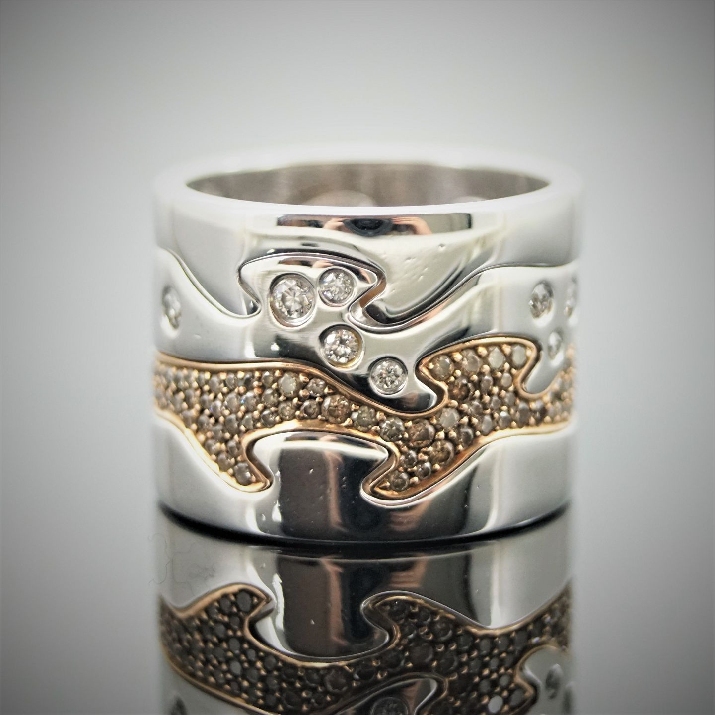 Nina Koppel for Georg Jensen; Firdelt fusion ring af 18 kt. hvidguld og rosaguld med diamanter.