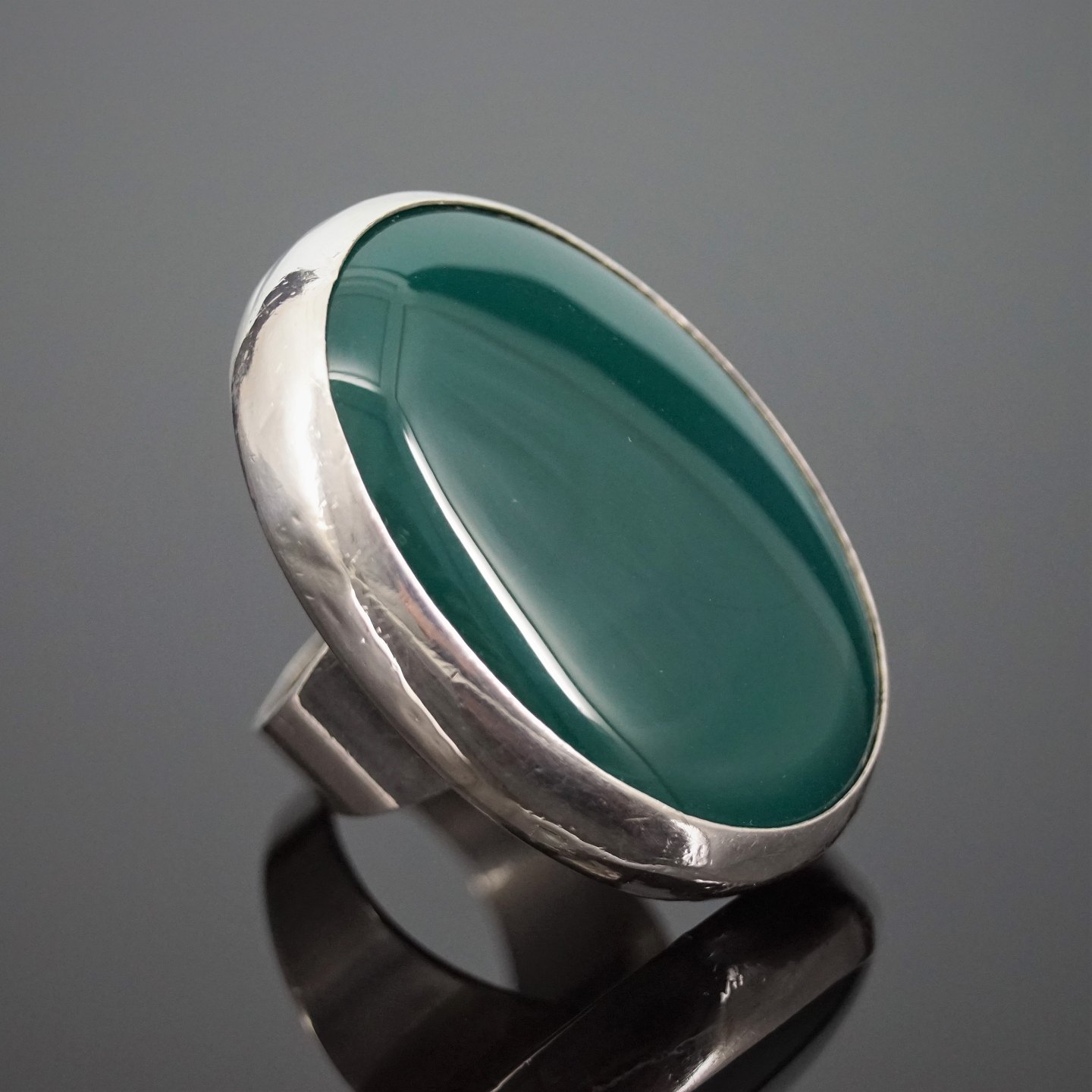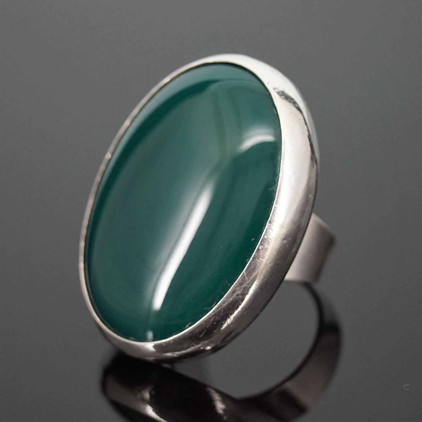 Stor ring af sterling sølv prydet med en oval grøn chrysopras.