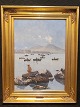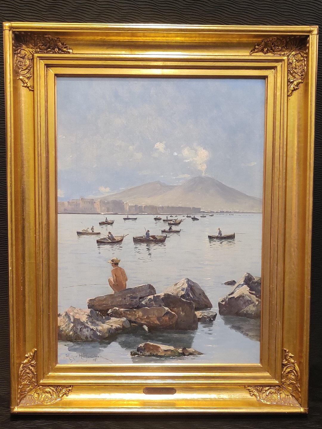 Holger Hvidtfeldt Jerichau oil on canvas. Motif from Golfo di Napoli seen with Vesuv.