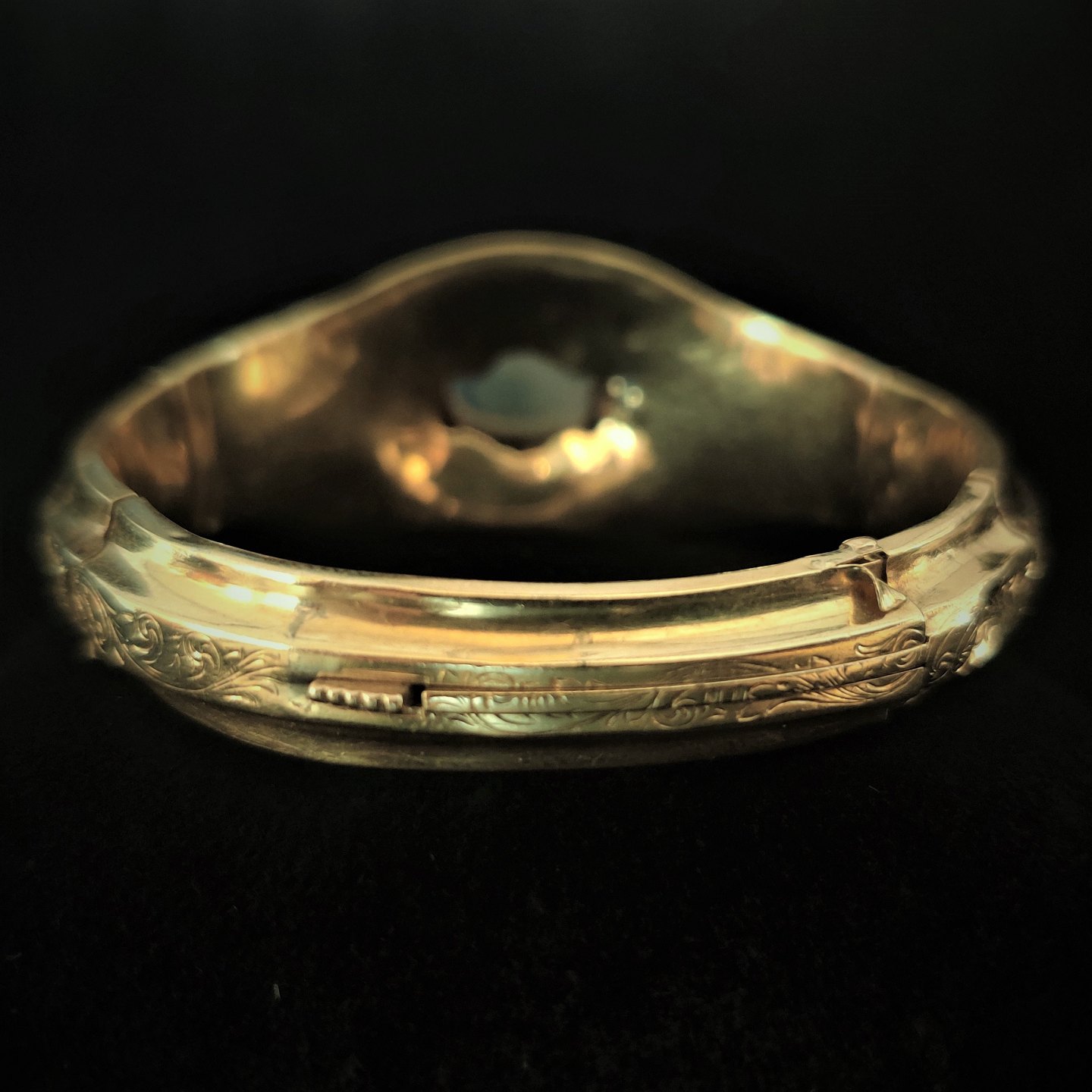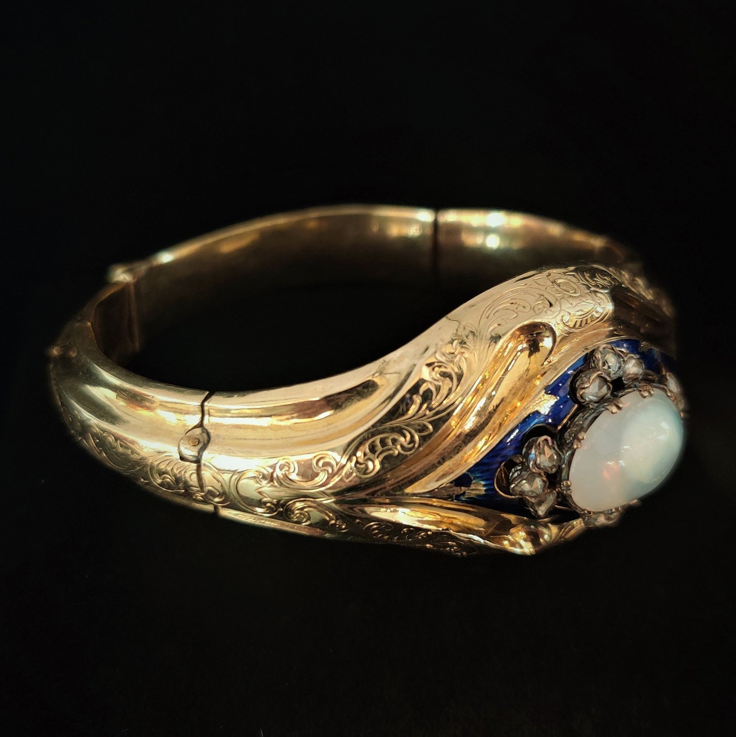 Armring/armbånd af 14 kt. guld prydet med opal, diamanter og emalje, midt 1800-tallet