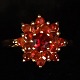A gold ring set with granates, mounted in 14k gold.
