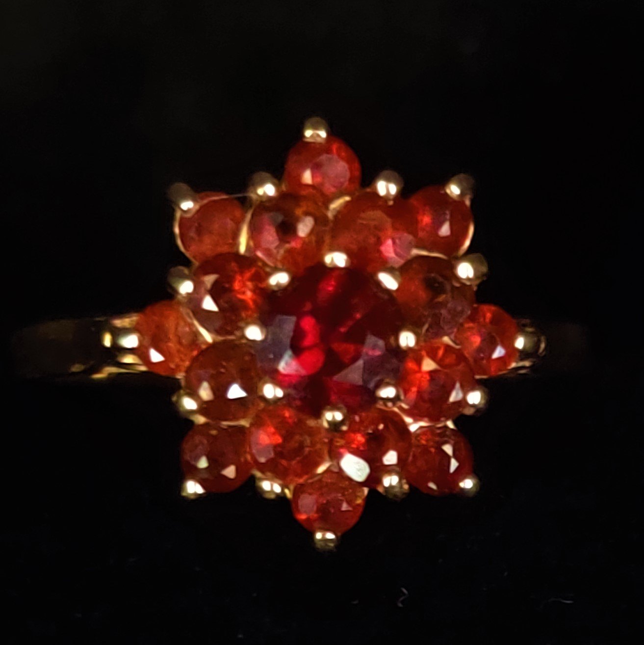 A ring of 14k gold with granates