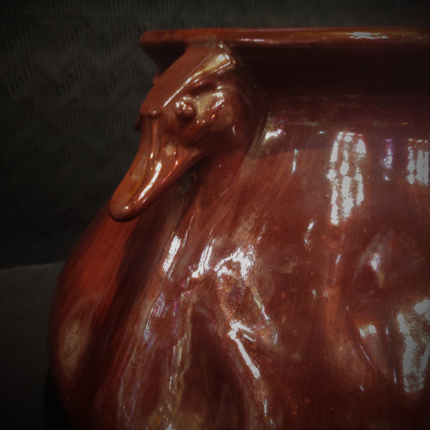 Karl Hansen Reistrup for Kähler; pottery vase decorated in red lustre glaze with decorations of ducks.