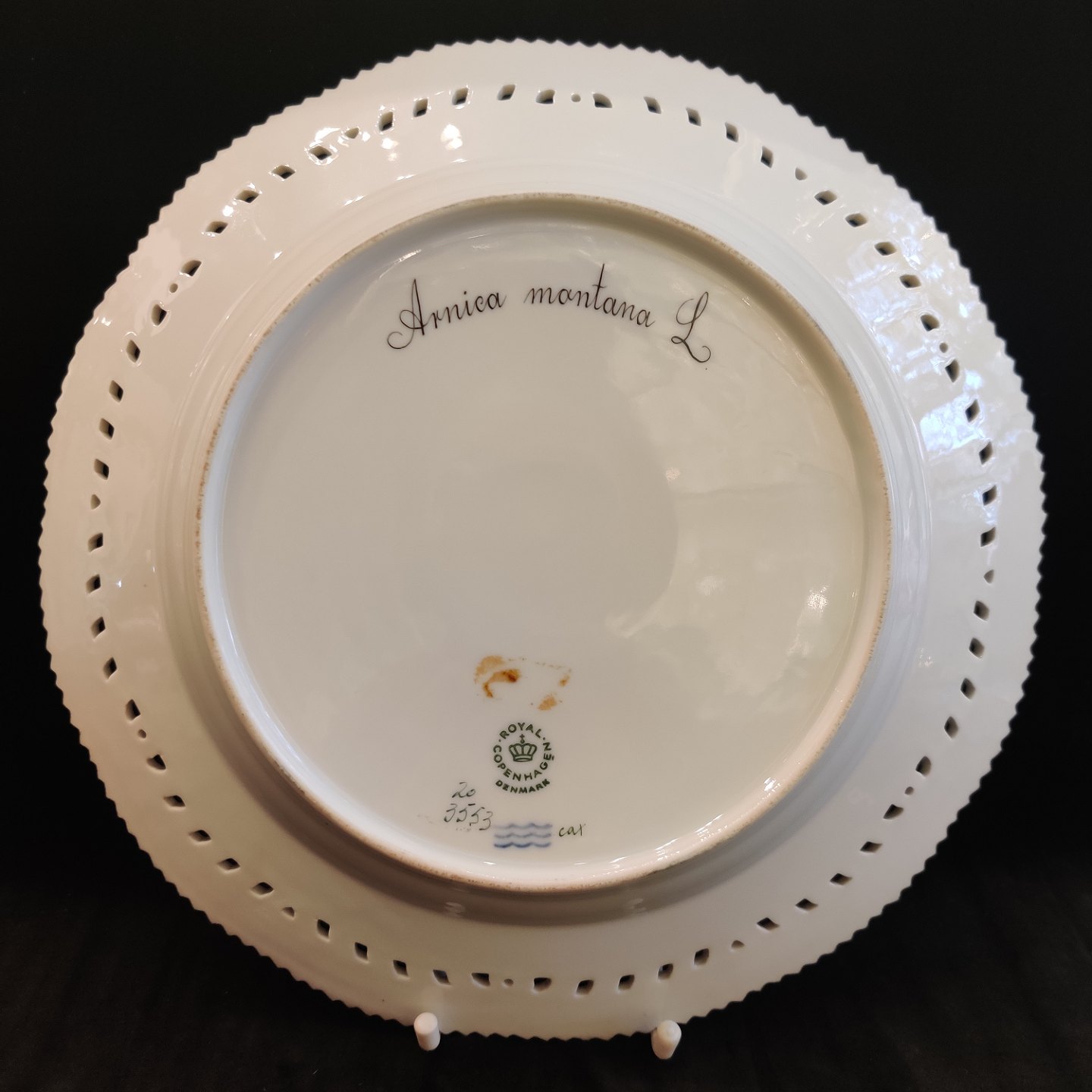 Royal Copenhagen, Flora Danica porcelæn; Middagstallerken #3553 med gennembrudt kant.
