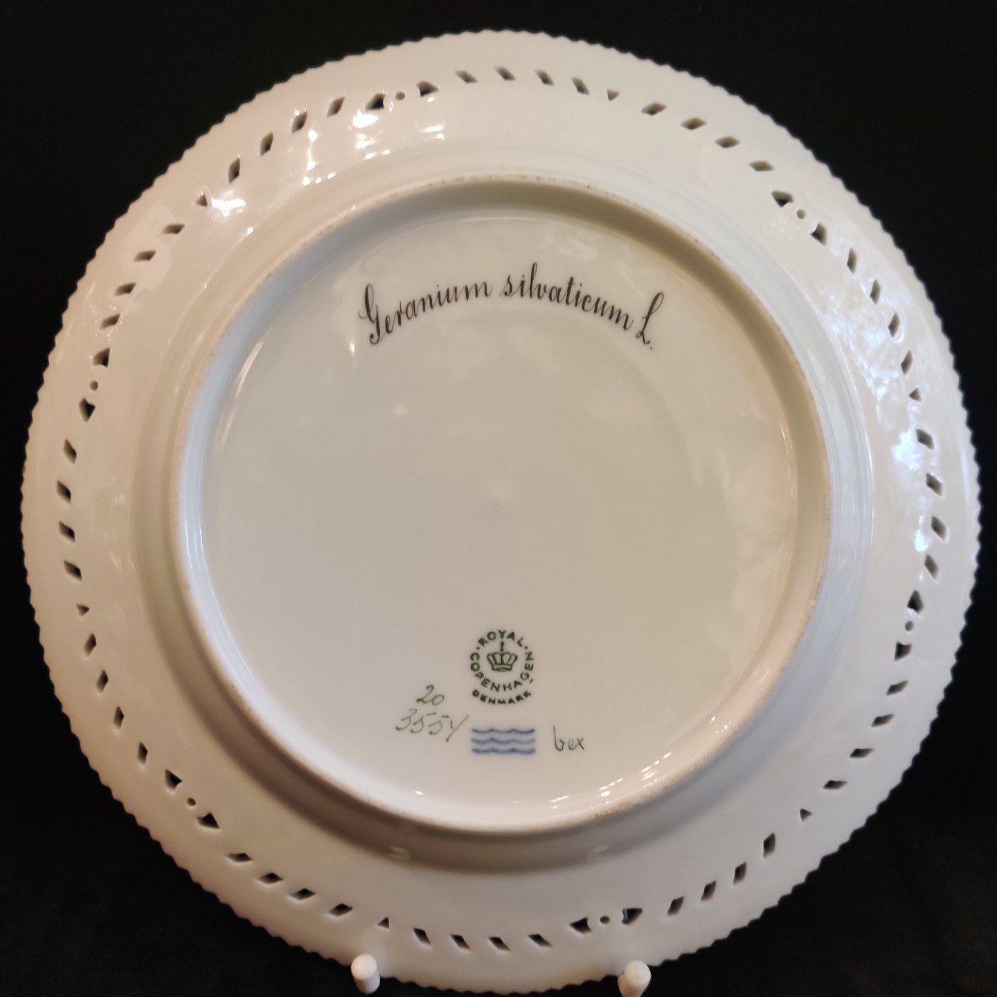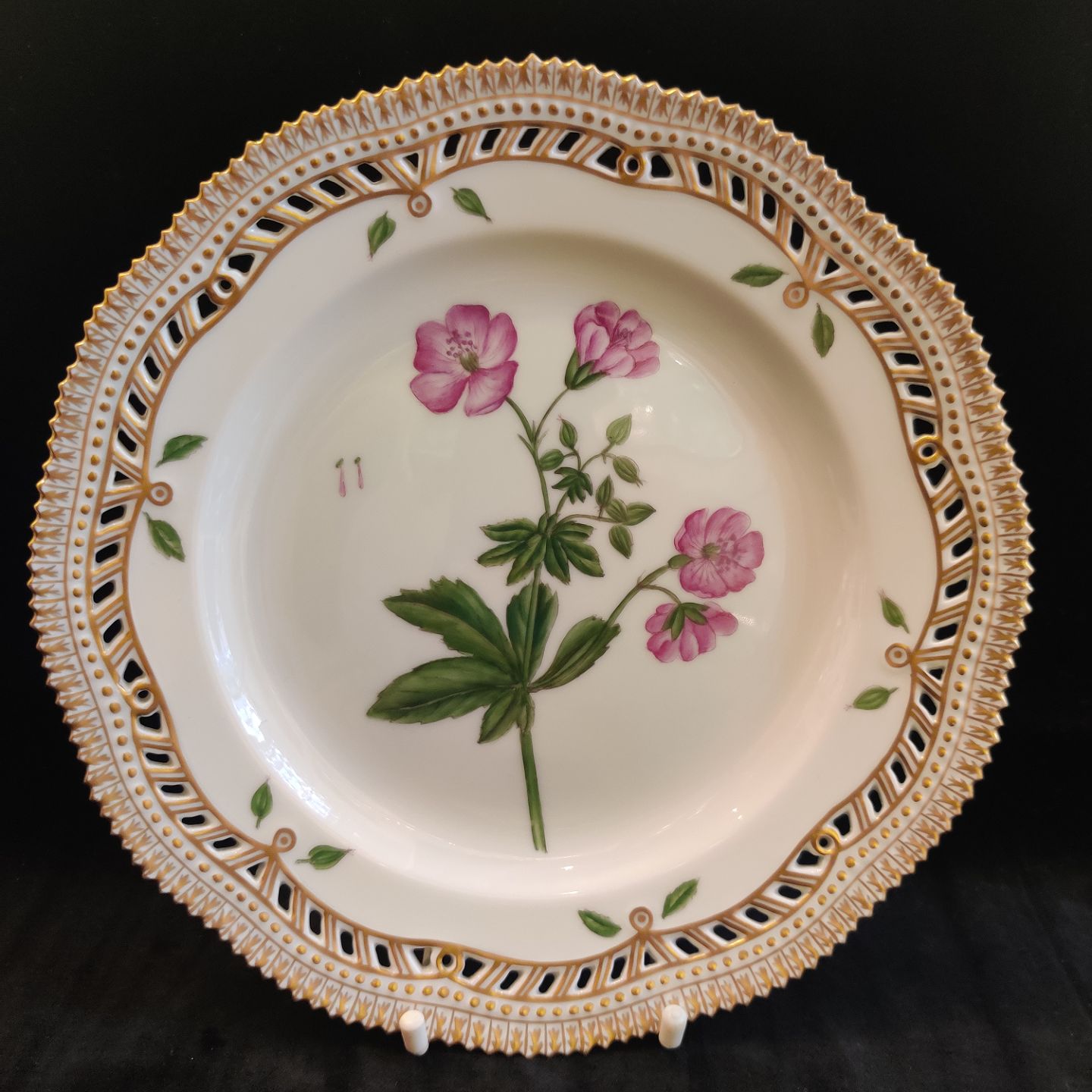Royal Copenhagen, Flora Danica porcelæn; Frokosttallerken #3554 med gennembrudt kant.