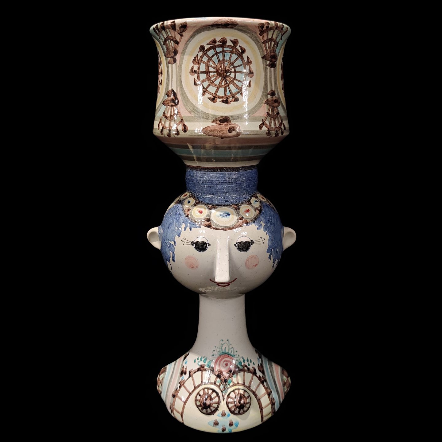 Bjørn Wiinblad; A mulit coloured figurine vase in glazed earthenware.