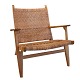 Hans J. Wegner; CH27 lænestol i eg med sjeneflet. Stel af massivt egetræ. CH27 er designet af Wegner og produceret hos Carl Hansen & Søn. Stemplet. OBS! Stolen fremstår i original stand, sjeneflettet har alderstegn!