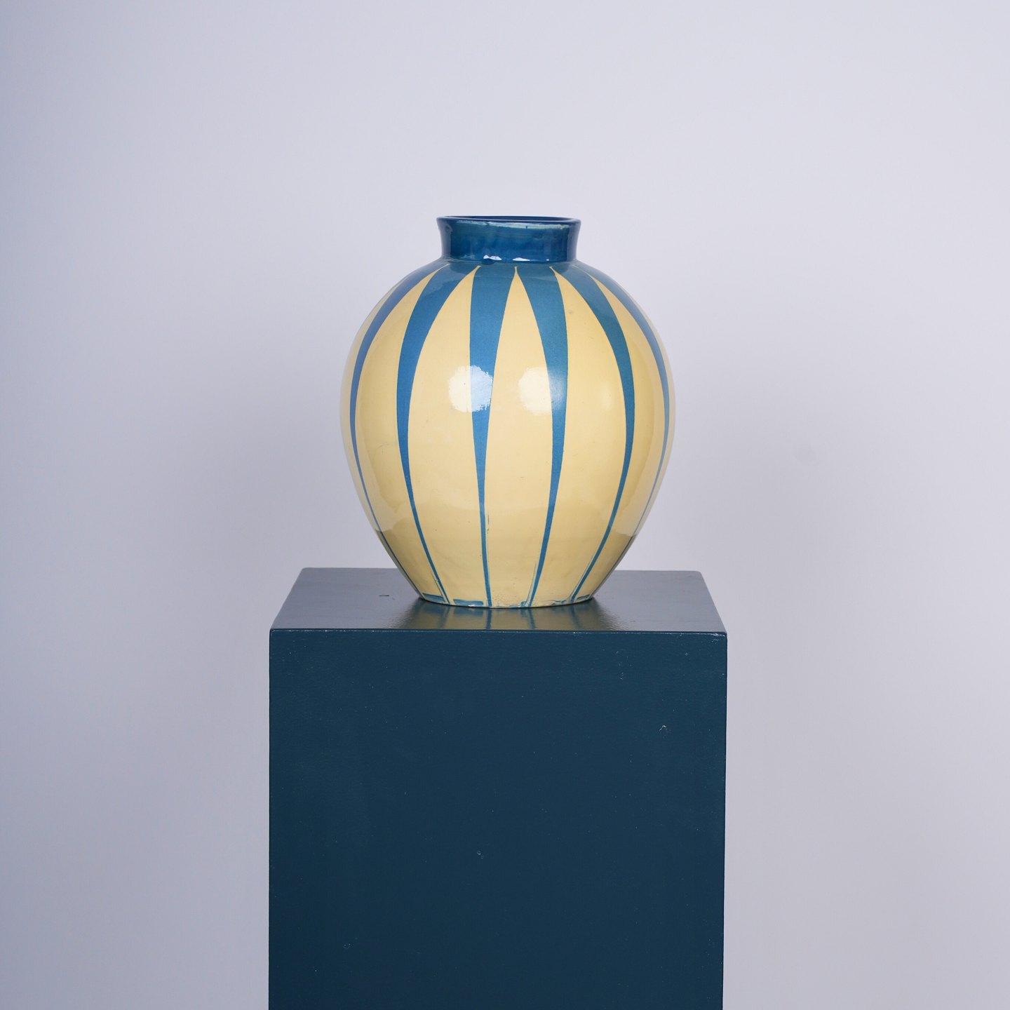 Herman A. Kähler; Stor vase i lertøj med mønster i råhvid og blå glasur