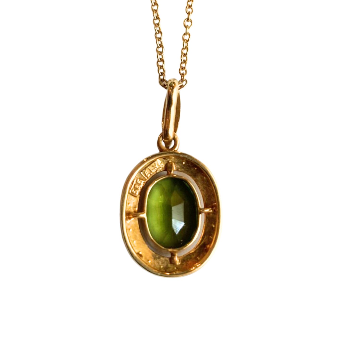 E. L. Weimann; Halskæde i 14 kt. guld prydet med peridot og perler.