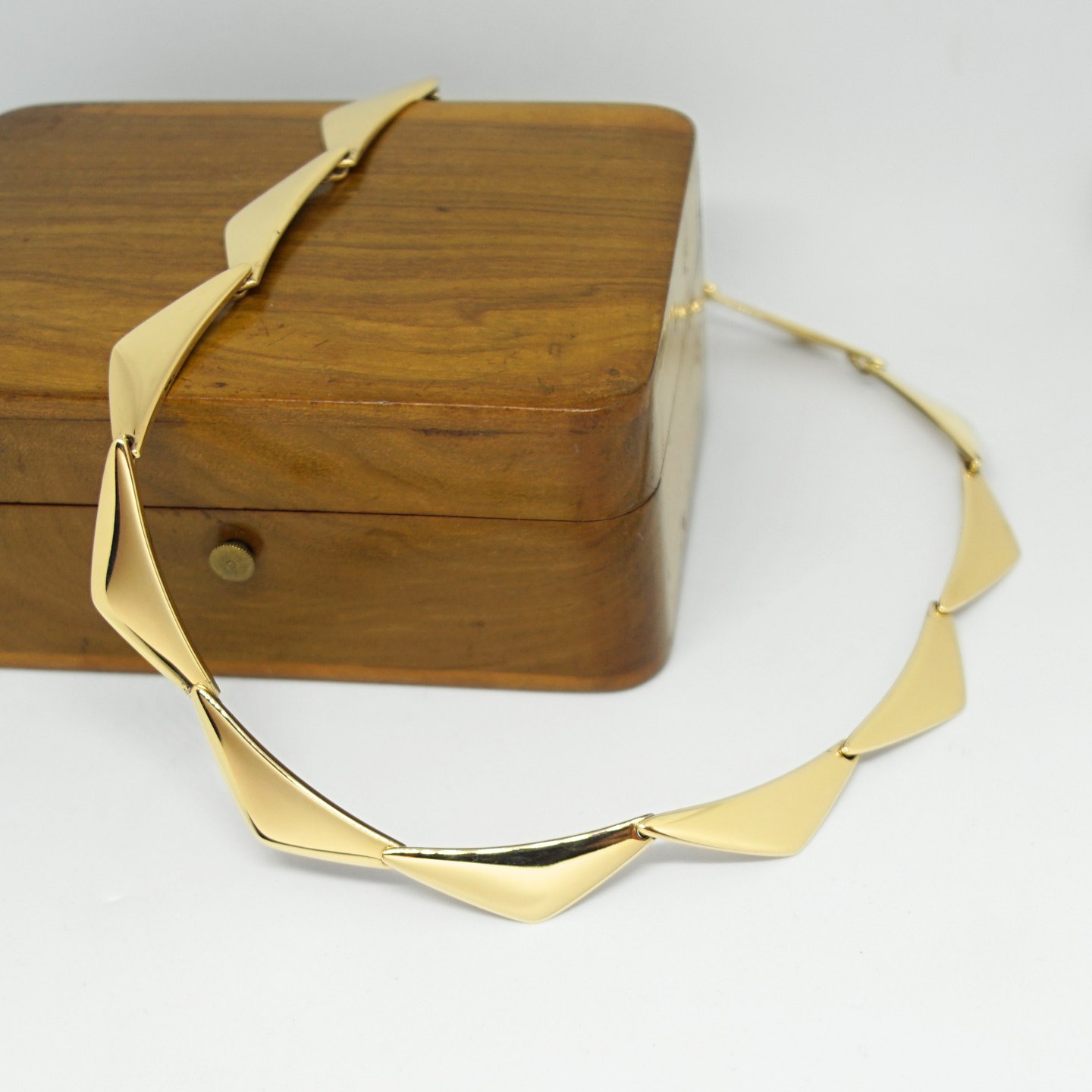 Peak halskæde af 14 kt. guld designet af Bent Gabrielsen for Hans Hansen. Dessin nr. 300. Med kasselås og sikkerhedslås.