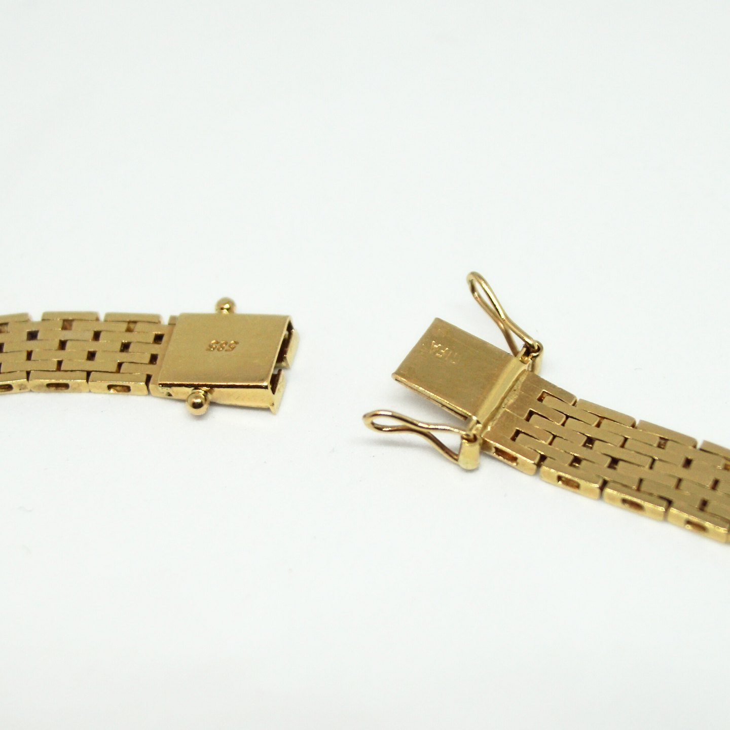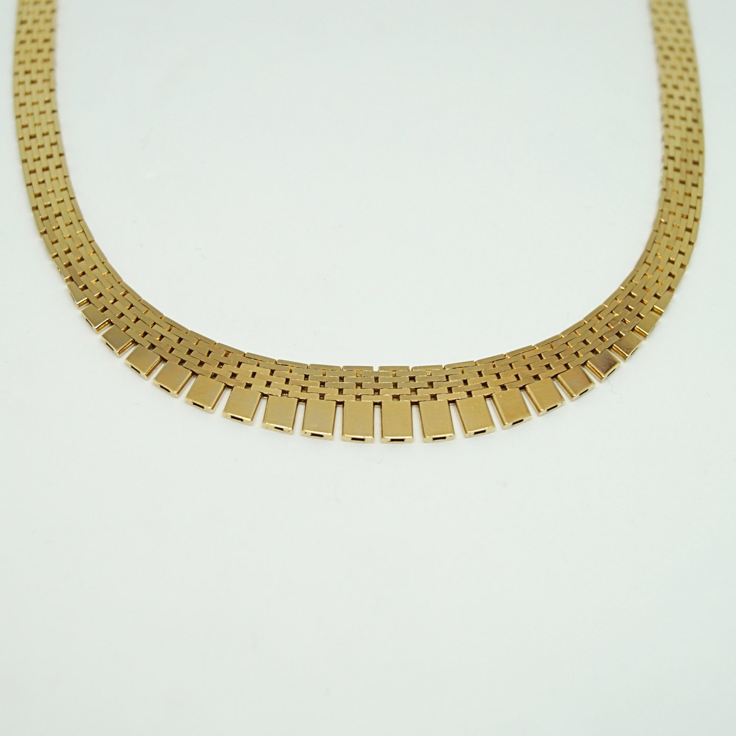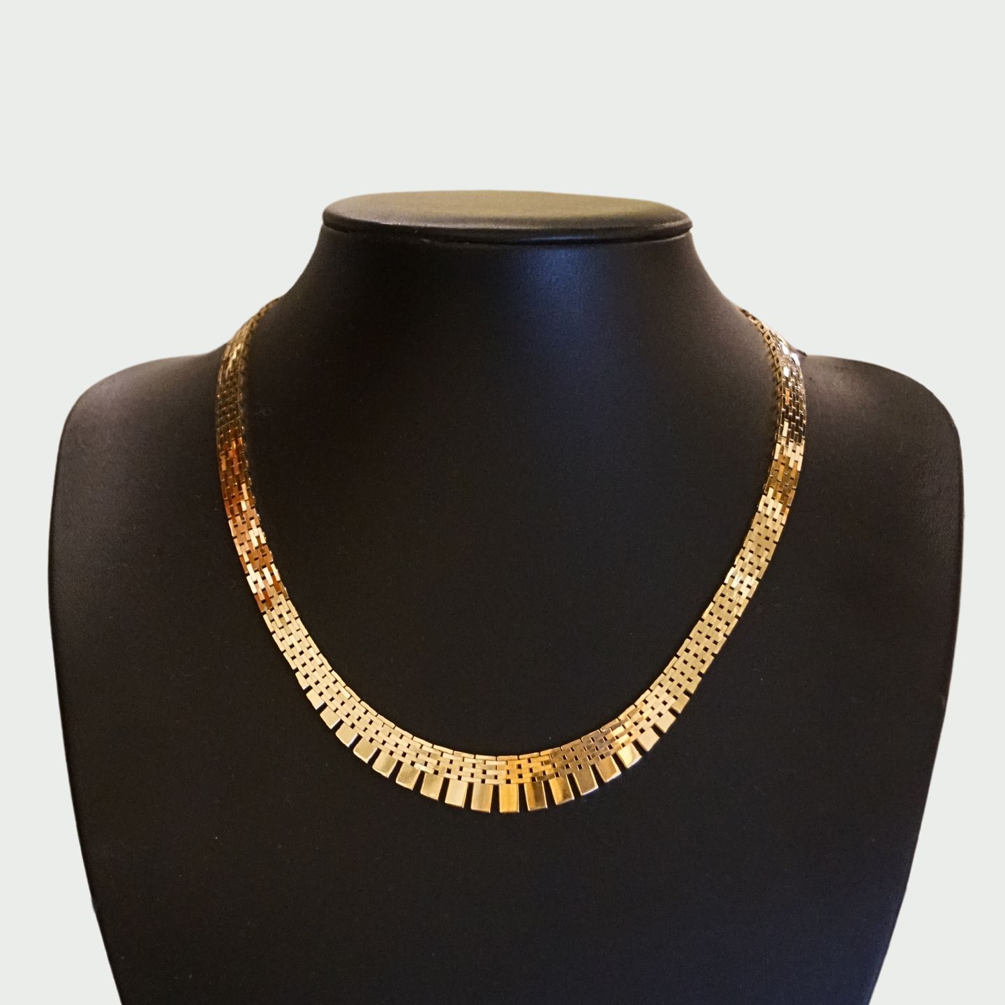 Murstenshalskæde med 7 rækker i forløb af 14 kt. guld. Monteret med kasselås samt to sikkerhedslåse.