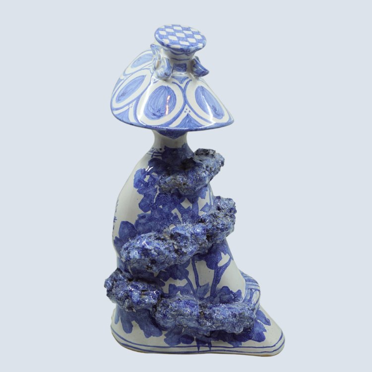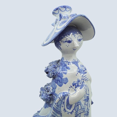 Bjørn Wiinblad; Blåmalet kvindefigur "Moster Ella" af glaseret lertøj. Fremstår i hel og pæn stand.