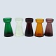 Collection of five tulip vases from Holmegaard around 1900. Consisting of the colours; clear, amber (yellow), green, violet (manganese) and red.