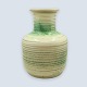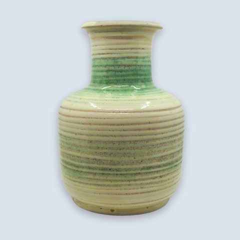 Kähler vase med striber indridset og med beige og lysegrøn glasur.