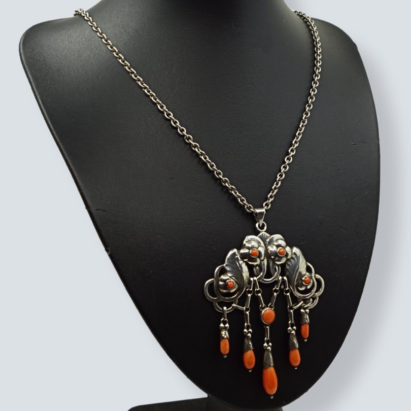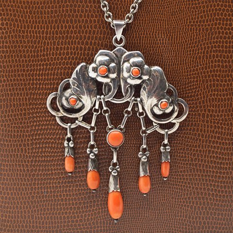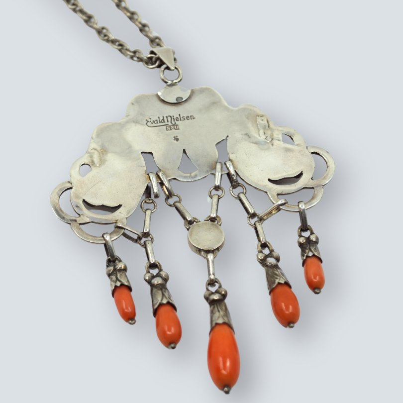 Evald Nielsen; Skønvirke halssmykke i sølv med koraller