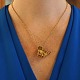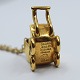 Ole Bent Petersen for Georg Jensen; Stort halssmykke i forgyldt messing forestillende en barnevogn #5219. Smykke fra serien "Sunshine & Night" design 5219. Vedhæng h. 2,1 cm, b. 2,7 cm, d. 1,3 cm. Halskæde l. 43 cm.