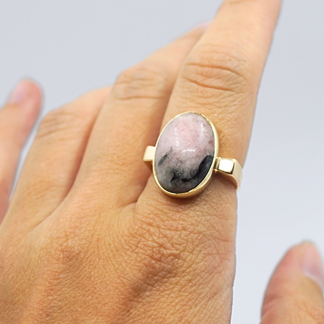 Ring i 14 kt. guld prydet med tugtupit.