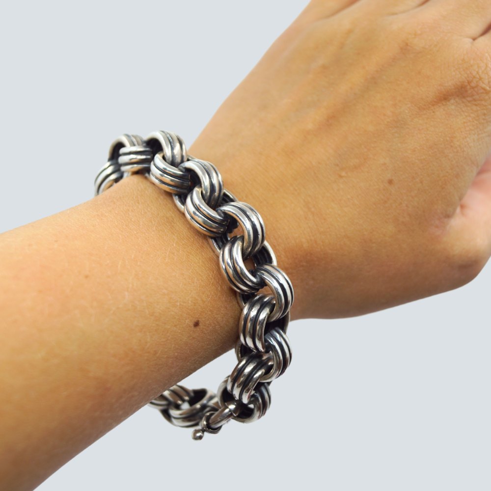 Aagaard; Stort sølvarmbånd i sterlingsølv med runde led. Armlænke længde 21,5 cm. B. 1,4 cm. Stemplet "JAa 925".