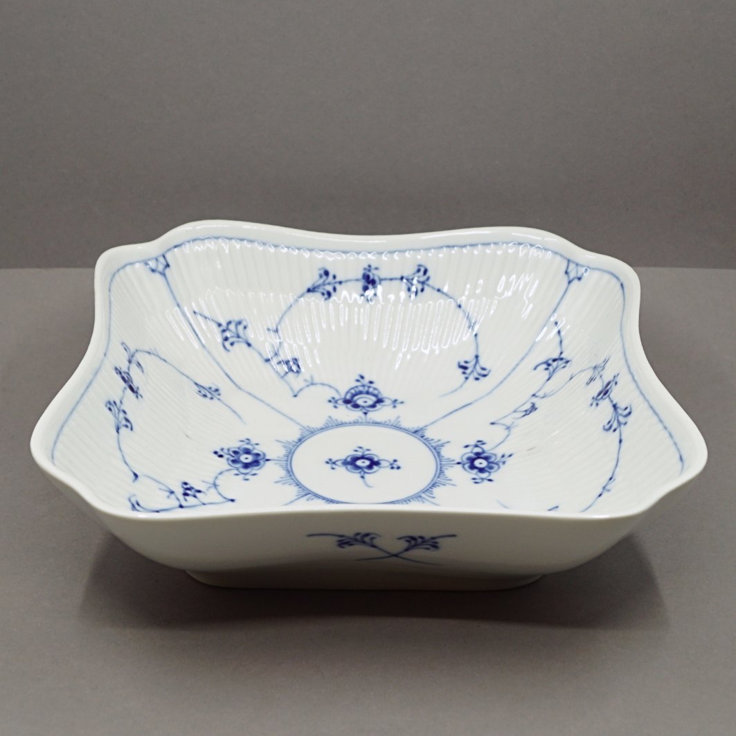 Royal Copenhagen, musselmalet riflet porcelæn; Firkantet kartoffelskål #26