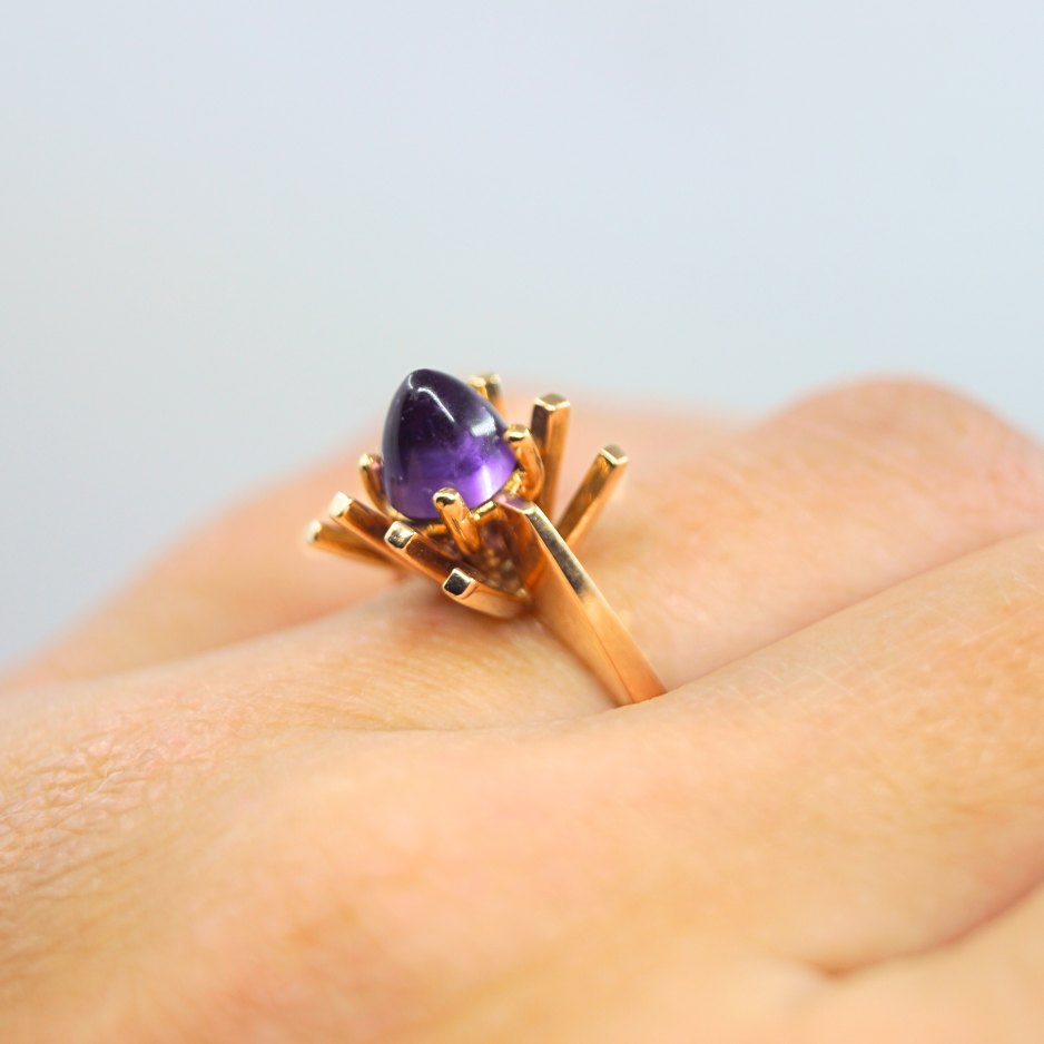 Ole Lynggaard guldsmykke. Ole Lynggaard; Ring af 14 kt. guld prydet med ametyst. Ring str. 52½. Stemplet "Ole L 585". Dansk design smykke.
