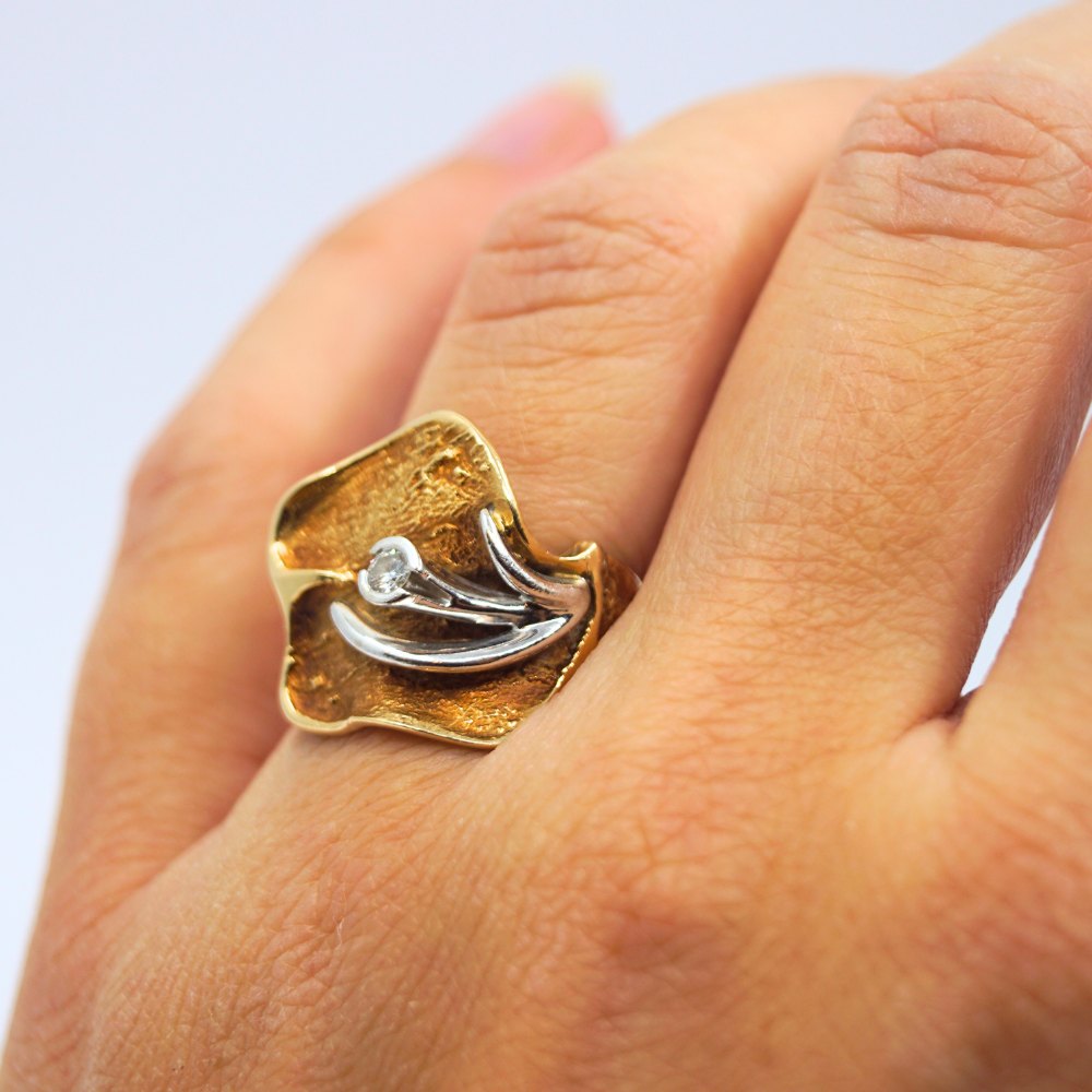 Ole Lynggaard; Ring of 14k gold and white gold with a diamond