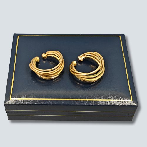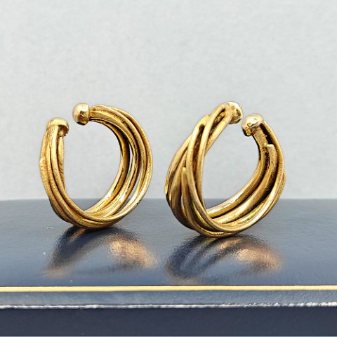 Anette Kræn; Par ørehænger af 14 kt. guld. Ørepynt til at hænge inde i øret. Mål 2,8 x 2,5 cm. Anette Kræn f. 1945, d. 2022. Dansk design smykke.