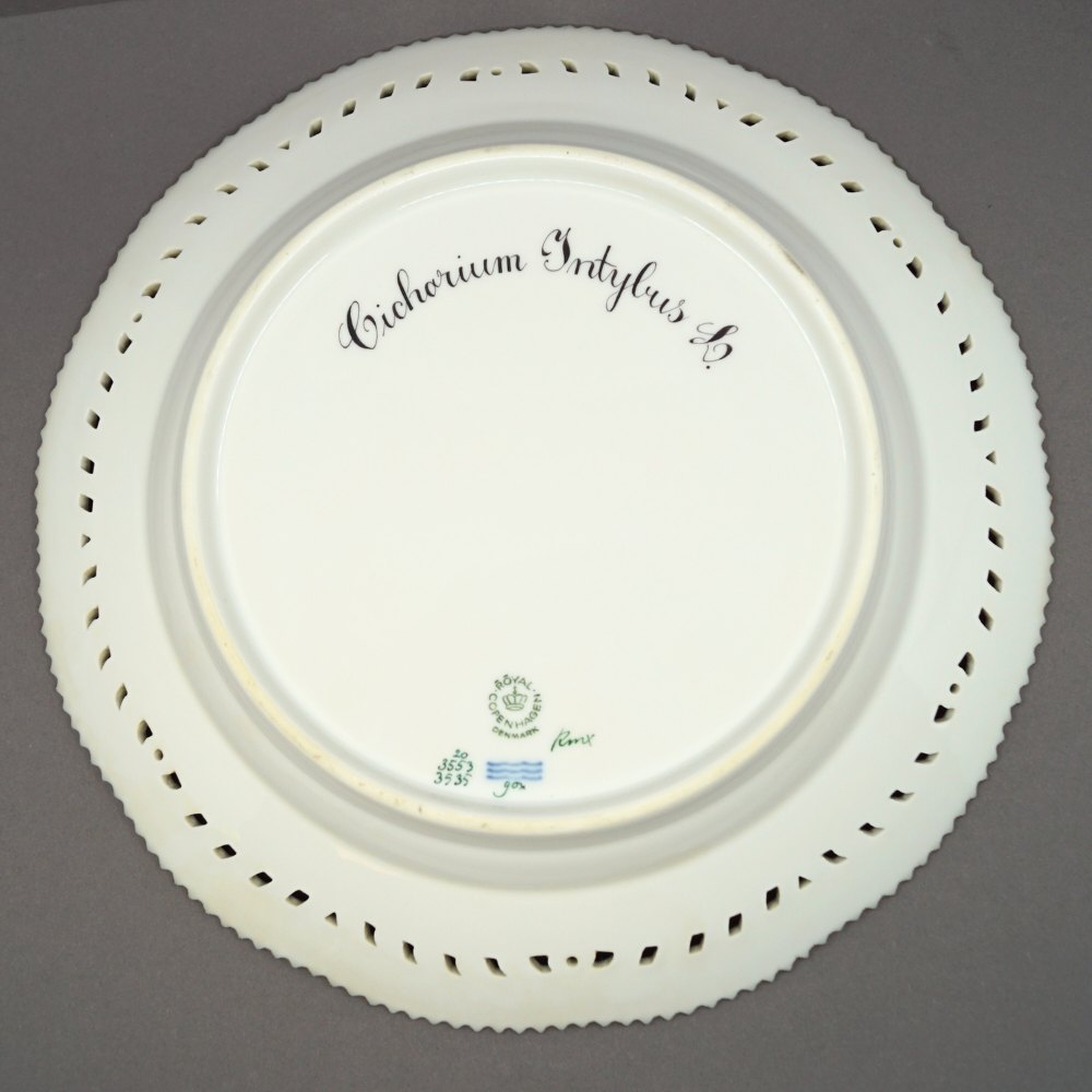 Royal Copenhagen, Flora Danica porcelæn; Middagstallerken #3553/3535 med gennembrudt kant.