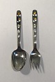 Dansk Gaffel og Ske sæt Sølv 830s med Uglemotiv