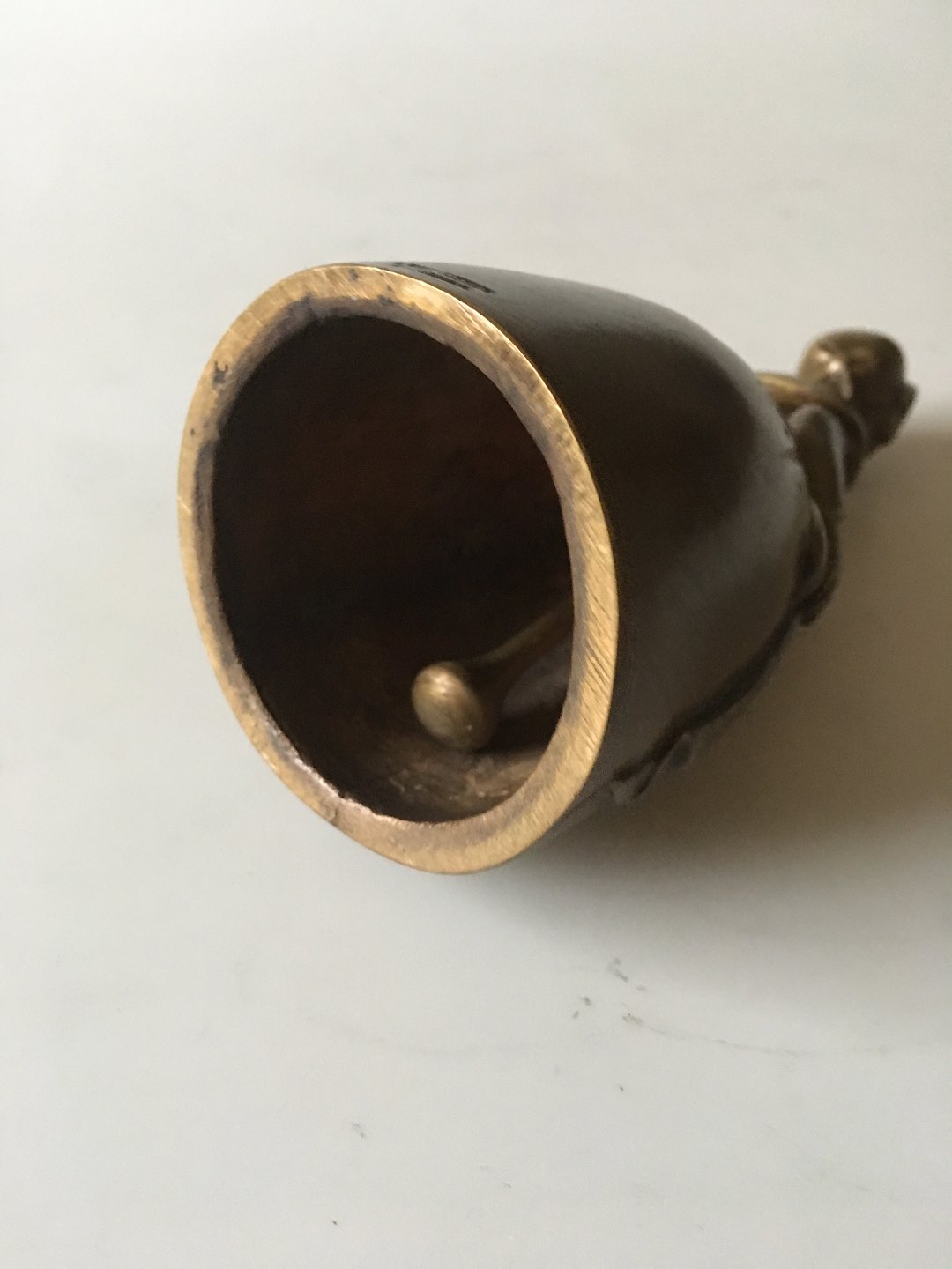 Arno Malinowski Bronce Tablebell from L. Rasmussen Bronce foundry, Copenhagen. In perfect shape. To use the bell, one holds the head, which rocks back and forth. Measures 14cm high.