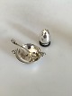 Evald Nielsen Salt dish with spoon and Pepper shaker in Sterling Silver and 830. Dish measures 5,5cm and shaker 3,1cm high. Is in good condition.