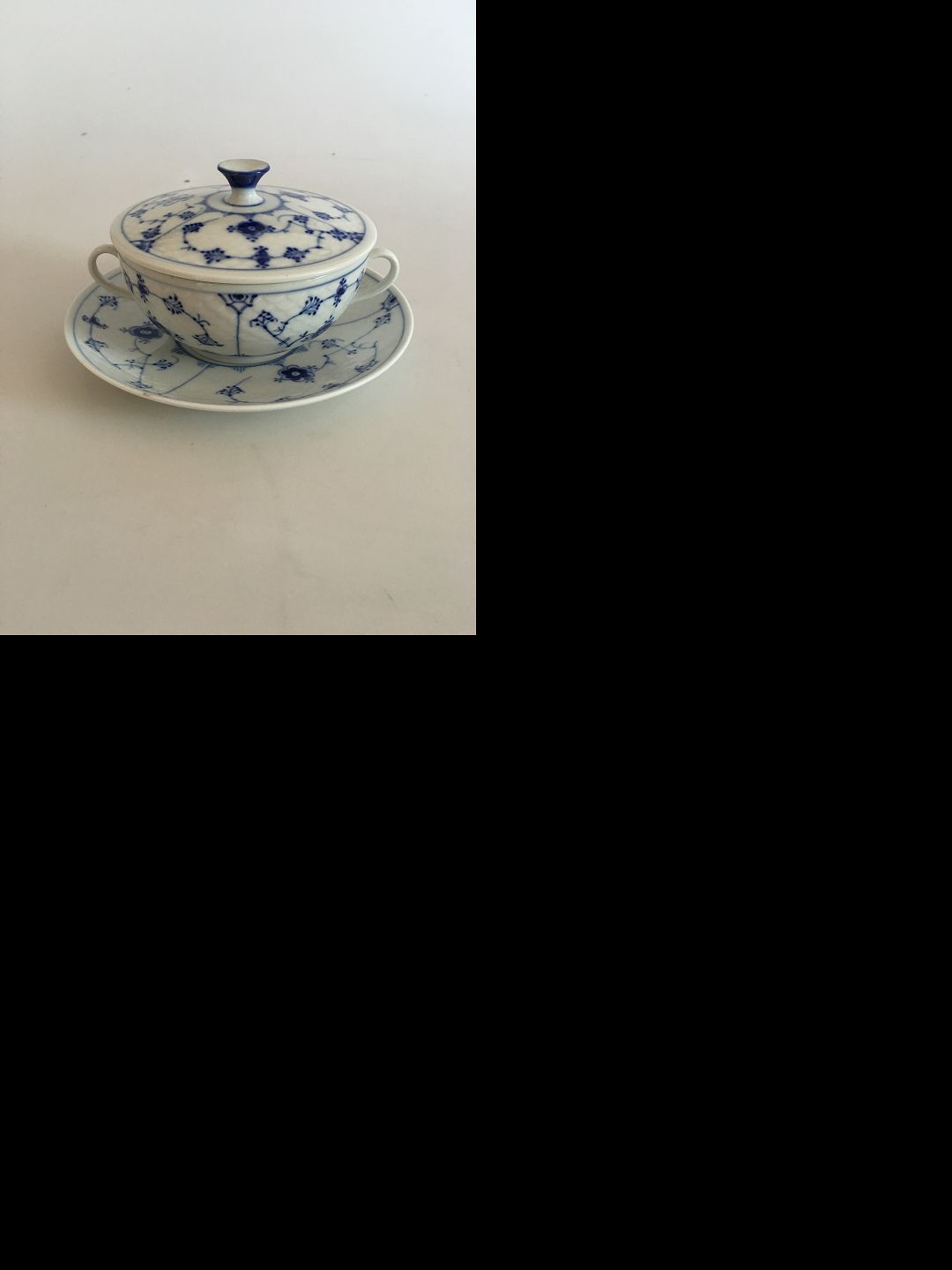 Bing & Grondahl Blue Traditional Blue Fluted Bouillon Cup, Saucer and Lid. In good condition.