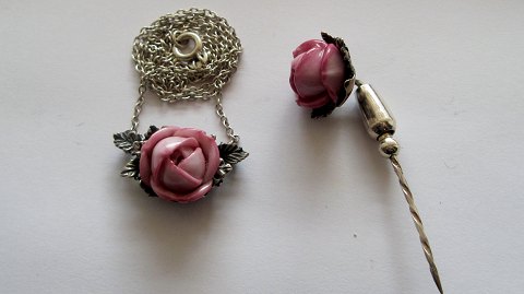 Royal Copenhagen Pendent and Needle with Sterling Silver. Marked with the RC mark, 925 and RCP. in perfect condition. These are pink. See the other listing with a white version.