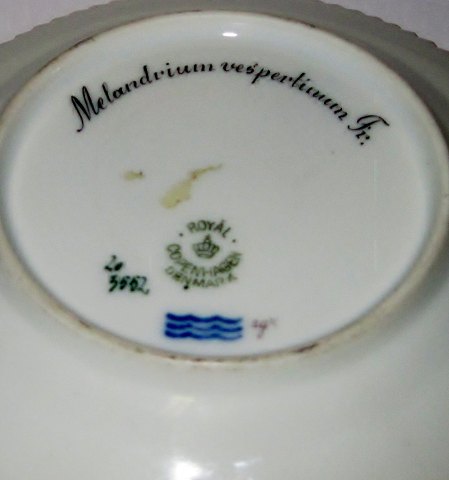 Royal Copenhagen Flora Danica Side Plate No 3552. Measures 14,3cm and is in good condition. Latin name "Melandrium vespertinum Fr."