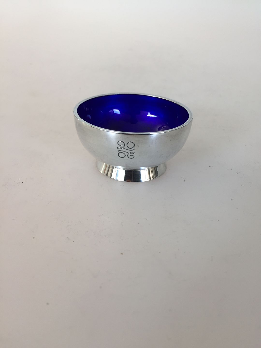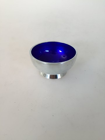 Mogens Bjørn-Andersen Lille Skål med blå emalje Birkerød. Måler 5,5cm dia og 3cm høj I find stand, et små hank og så en gravering/decoration på siden.