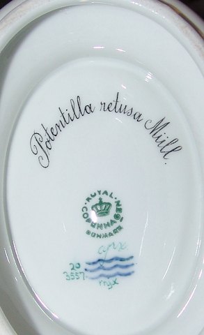 Royal Copenhagen Flora Danica Salt Dish, Soup Dish or Paper weight 20/3557. The flower is: "Potentilla retusa Mull". Measures 11cm, first quality and in perfect condition.