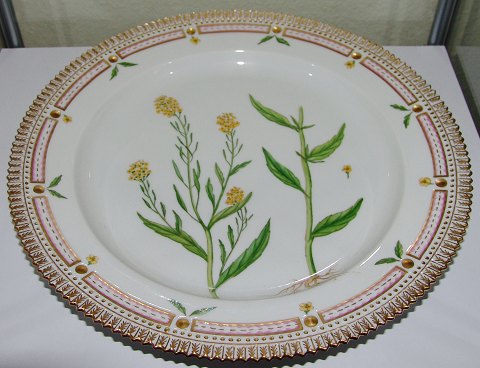 Kongelig Porcelæn Flora Danica Rundt Serveringsfad 20/3523. Blomsten er: "Erysimum cheiranthoides L.". Måler 30cm, første sortering og i perfekt stand. Royal Copenhagen